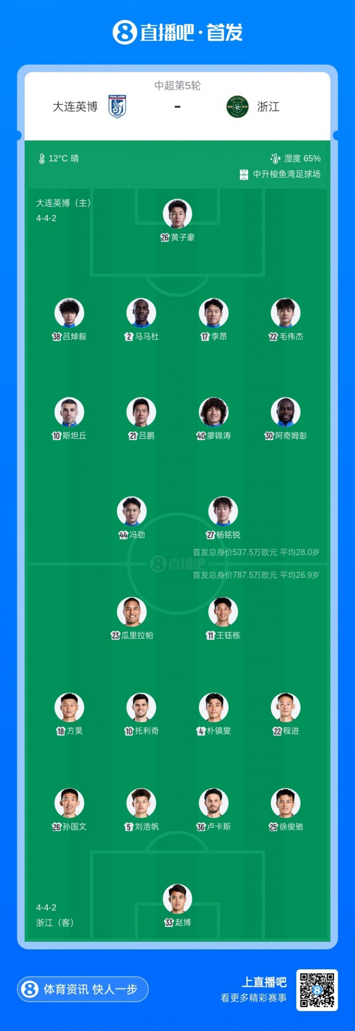 04月10日讯 今晚19:35郑州配资网,中超第5轮,大连英博vs浙江。赛前首发阵容已经公布。